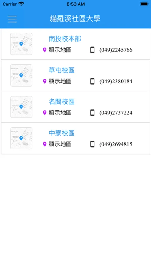 4. 聯絡資訊:瀏覽本縣三所社區大學各校區連絡電話、交通位置。