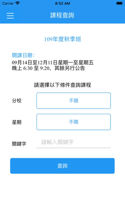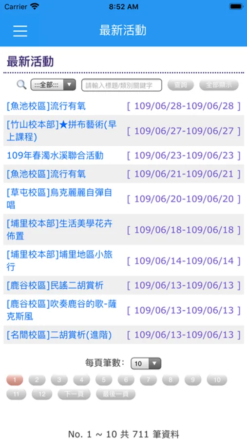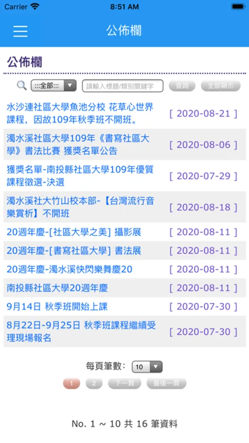 3. 課程查詢:查詢本縣三所社區大學班季、課程內容及課程進度表。