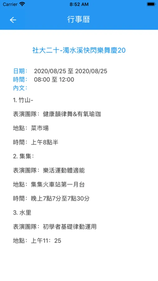 2. 行事曆:查詢本縣三所社區大學記事項目。