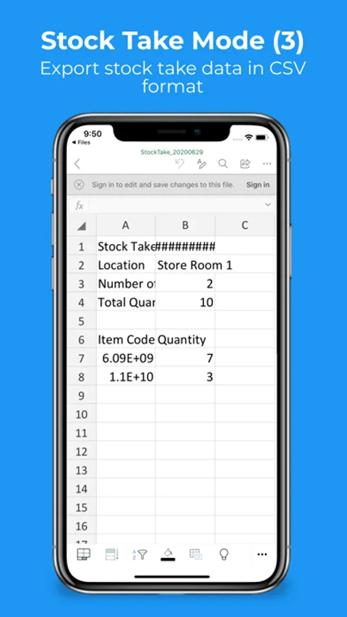 • All stock take data is saved on your device. Therefore, no internet connection is required
