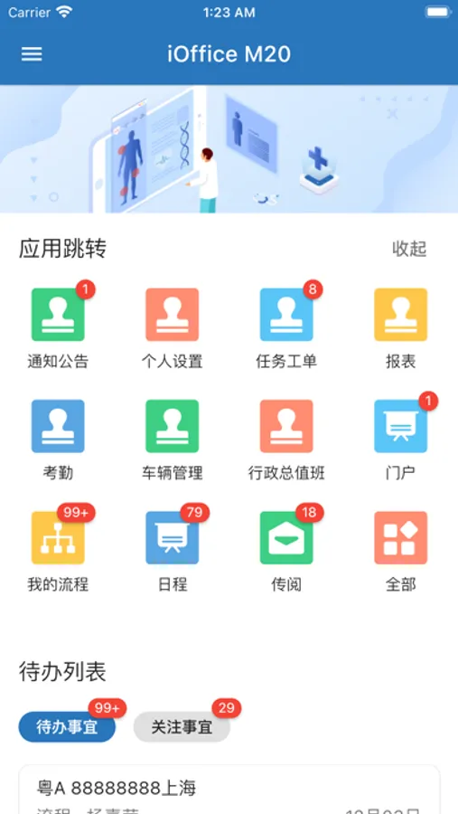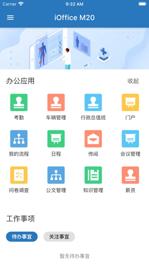 iOffice移动办公系统集成了协同OA上的流程、传阅、通知公告、通讯录、在线对话和即时消息等常用的应用,将这些功能迁移至iPhone,从而帮助用户实现3A办公,即随时随地处理任何事务,关联企业信息化系统,使得信息化办公可以从此如影随形,得心应手。
