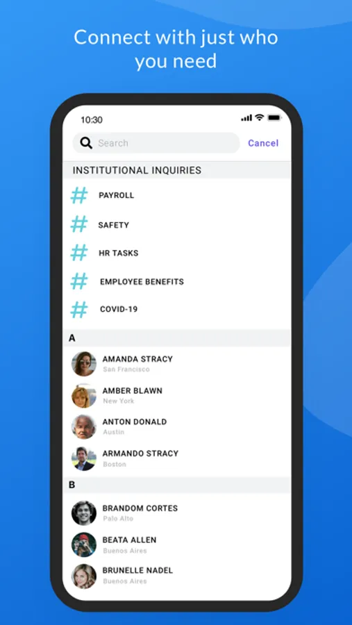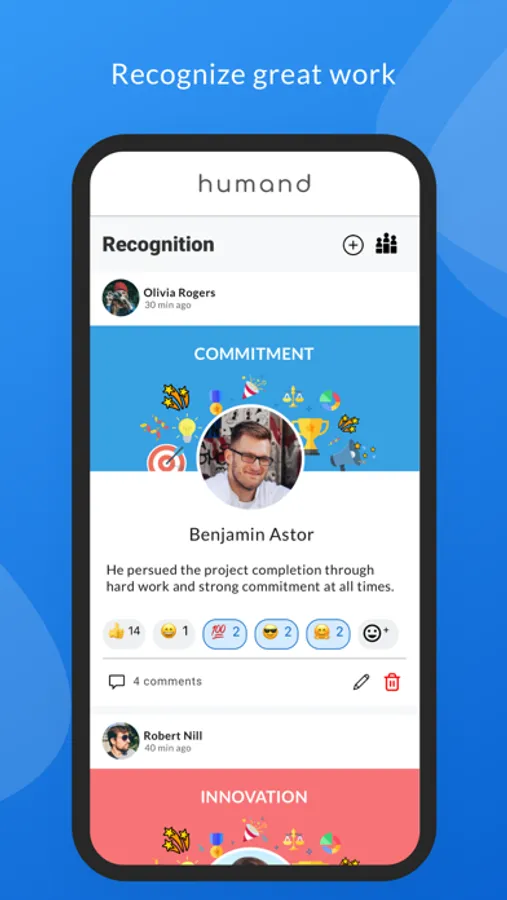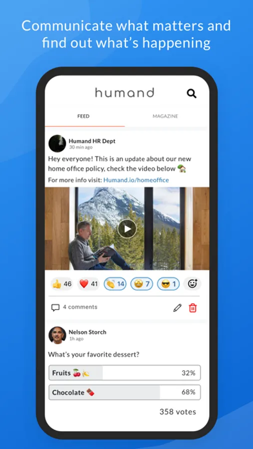 • Social Community Feed. Communicate what matters. Post and read announcements, see reactions and comments from everyone. Have instant targeted reach to all the collaborators with push notifications in a unified organization News Feed