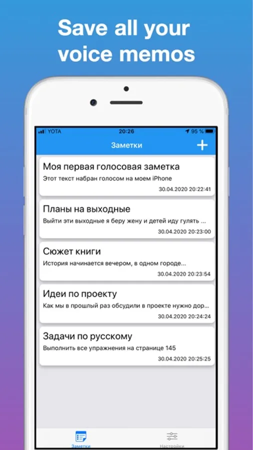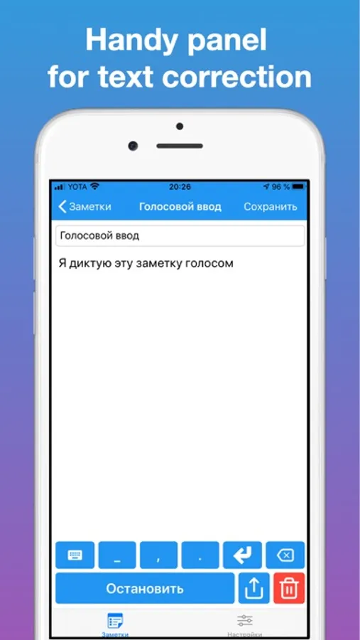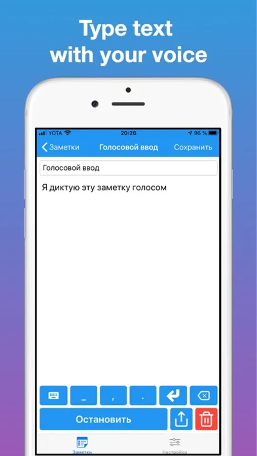 Dictate with your voice and the app will translate it into text, the fastest way to create big notes.