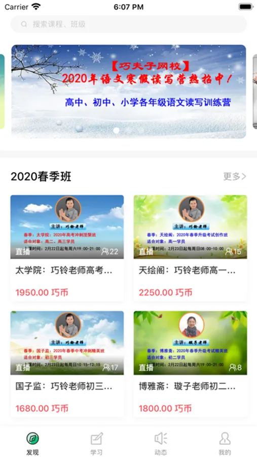 巧夫子,直播互动小班化教学的网校平台;