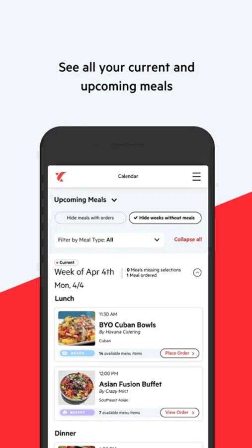Cloud Cafe customers: order your favorite individual meals just for the days you’re in the office.