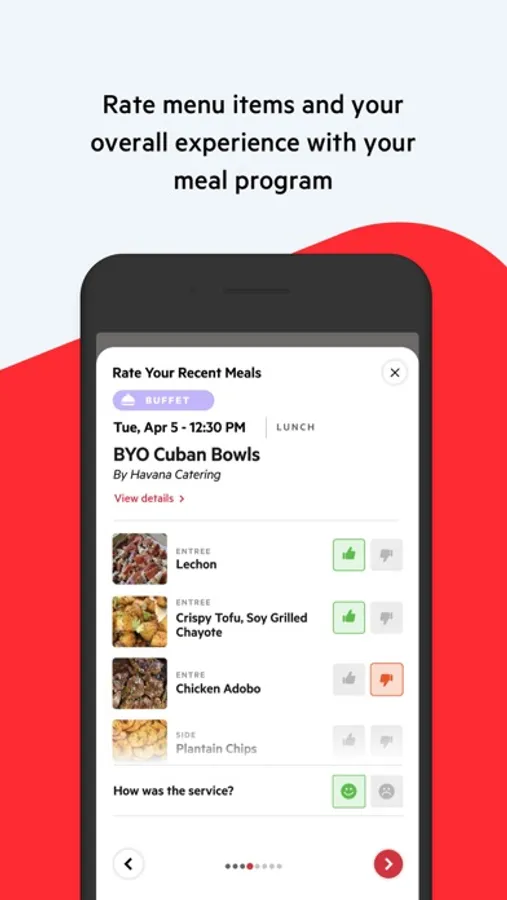 Influence your food program: the more you rate, the better and more personalized future menus become.