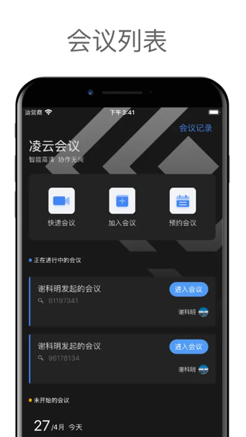 -界面清爽简洁,一键预约、发起、加入会议;
