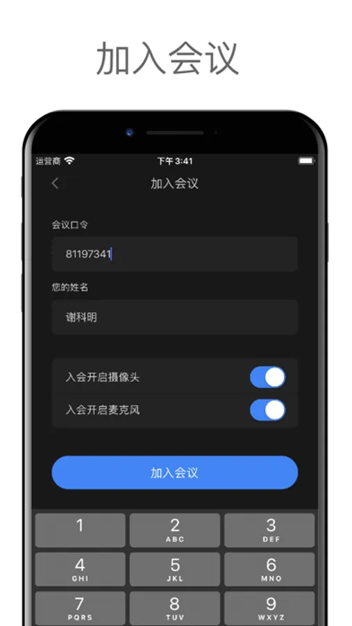 【参加会议】在登录状态,输入会议口令,即可快速参加会议,无论在哪都不会错过会议