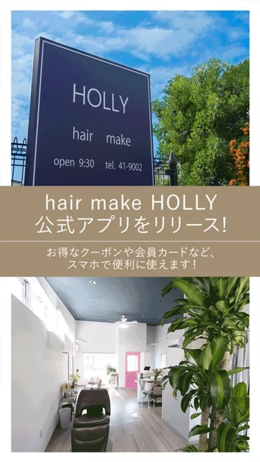 ピンクのドアがチャームポイントのHOLLYではヘアケアや頭皮・お肌のお悩みなどいつもきれいでいられるご提案をさせていただいております。お気軽にご来店ください。