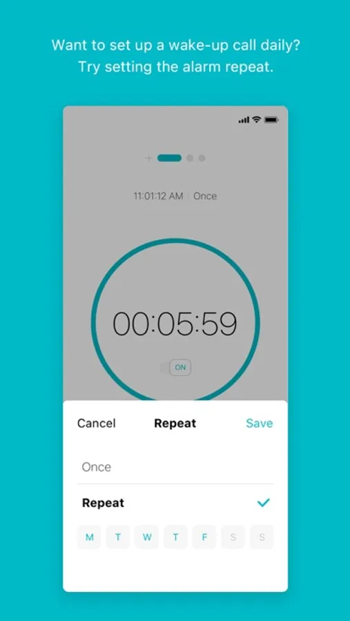 ∙ Want to set up a wake-up call daily? Try setting the alarm repeat.