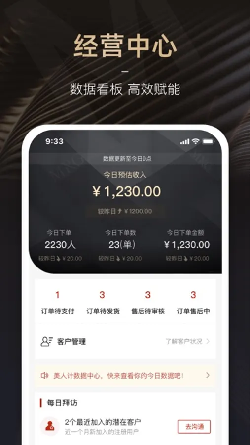 MRG商家版致力于为用户提供全方位服务支持,商品卖点、经营数据、活动通知、优质素材等内容
