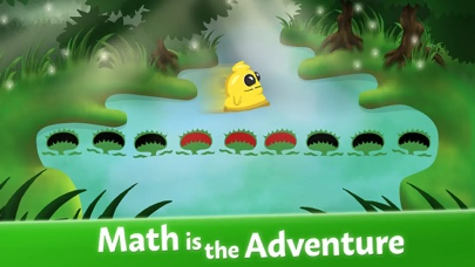 Your friendly yellow blob will take you on a silly quest, filled with mishaps and unfortunate events. He does not take himself too seriously, but he is dead serious about proving that every child can be a wizard of Math. He will jump into boiling-hot lava, fall off cliffs and fight monsters. All you need to do is figure out how far he needs to jump and how many enemies he needs to overcome. Correct answers are rewarded with coins and progression in the game. Any unsuccessful attempt to solve a question is responded with entertaining feedback. The player is free to choose the difficulty level. Progression requires correct answers, but the wrong answers do not cost any points. All you need to do is keep on playing.