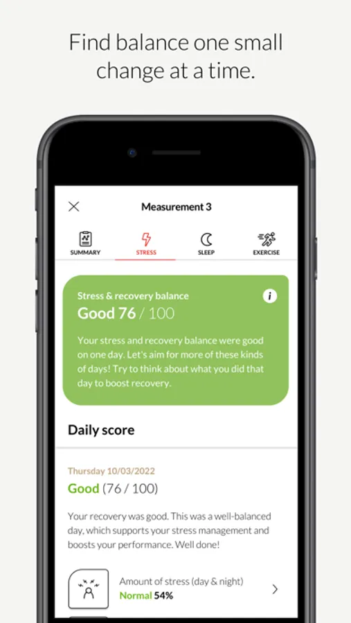 View physiological data and meaningful insights about sleep, recovery, stress and exercise, and understand how your body reacts in different life situations.