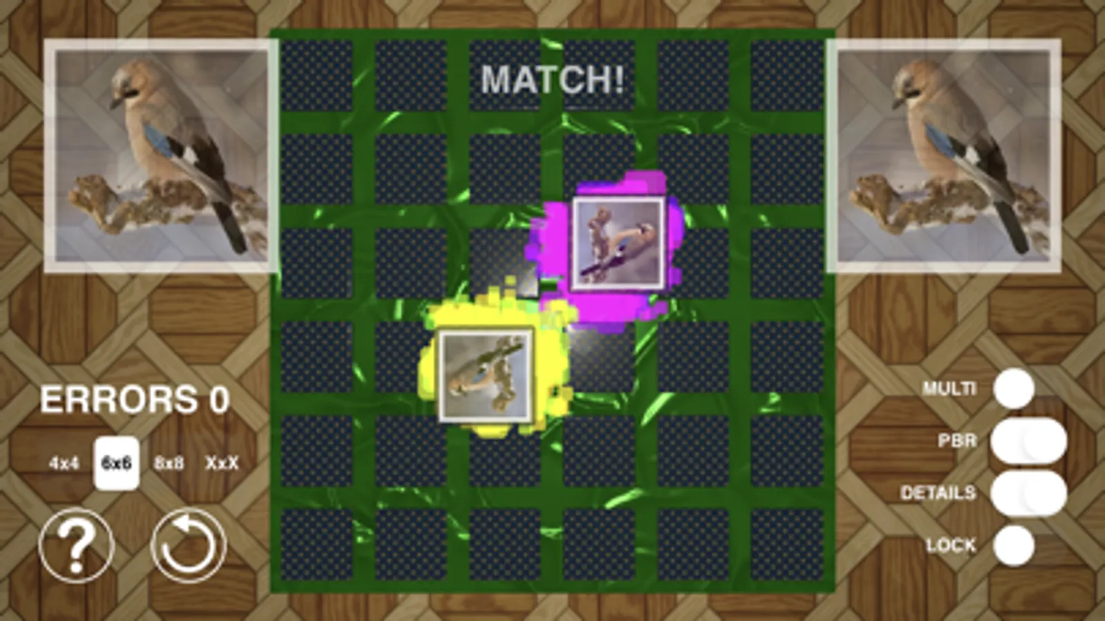 This app is a classic memo game for young and old. There are 4 levels of difficulty available. 4x4, 6x6, 8x8 and for the professionals we have integrated an extra 10x10 mode.