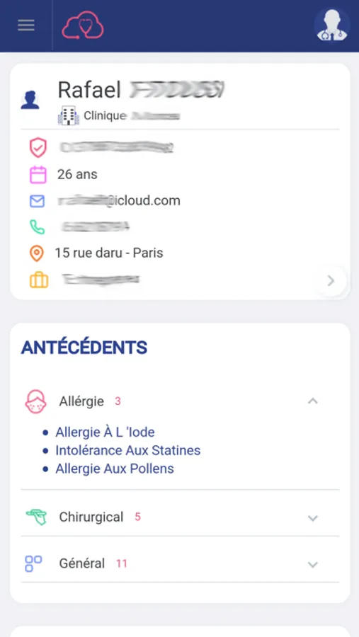 Patient: Digital medical records. Easily centralize your data. Share and collect your information. Confidentiality respected 100%.
