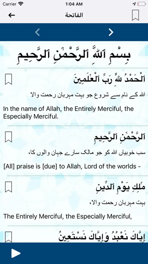 • Audio Recitation: Lets one listen to the complete narration (Qiraat al Quran) of all Chapters in MP3
