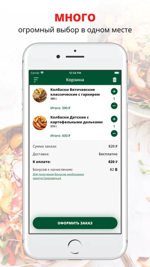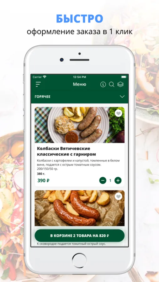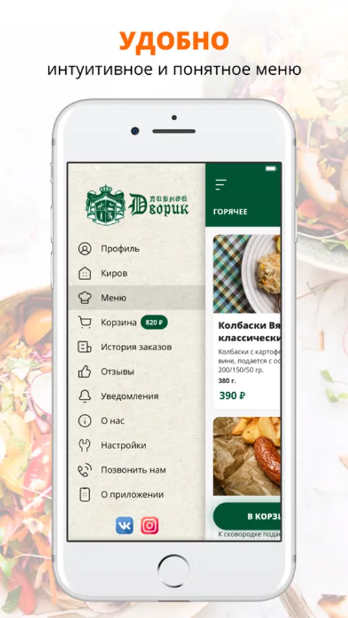 Просто установите наше приложение, выберите желаемые блюда из меню и закажите вкусную еду с доставкой по г. Кирову!