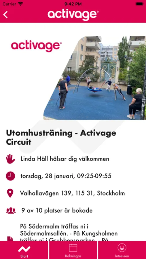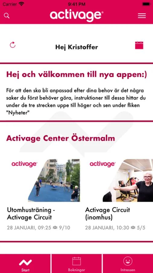 Medlemmar på ett Activage Center kan boka, avboka, skapa och hantera aktiviteter.