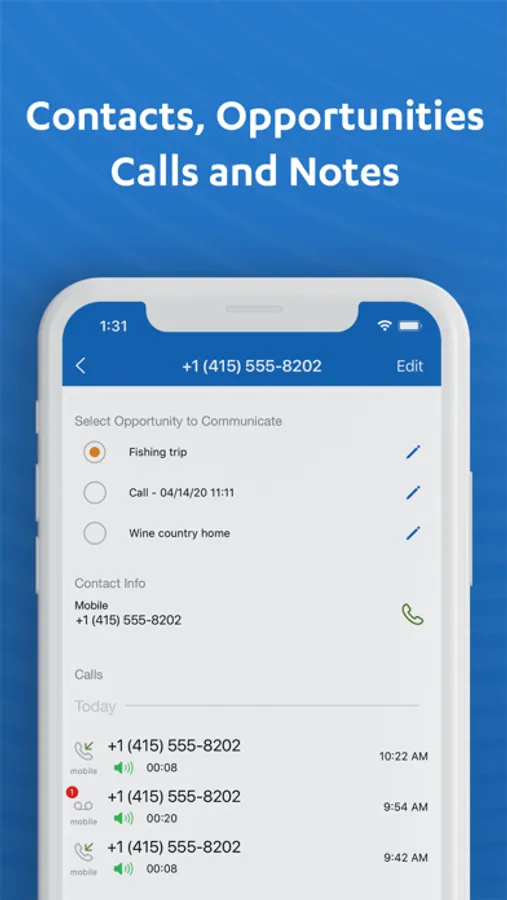 Users can import their business contacts, receive calls and make calls to contacts, listen to inbound calls, update notes, edit contacts, see communication organized per opportunity and see Dashboards.