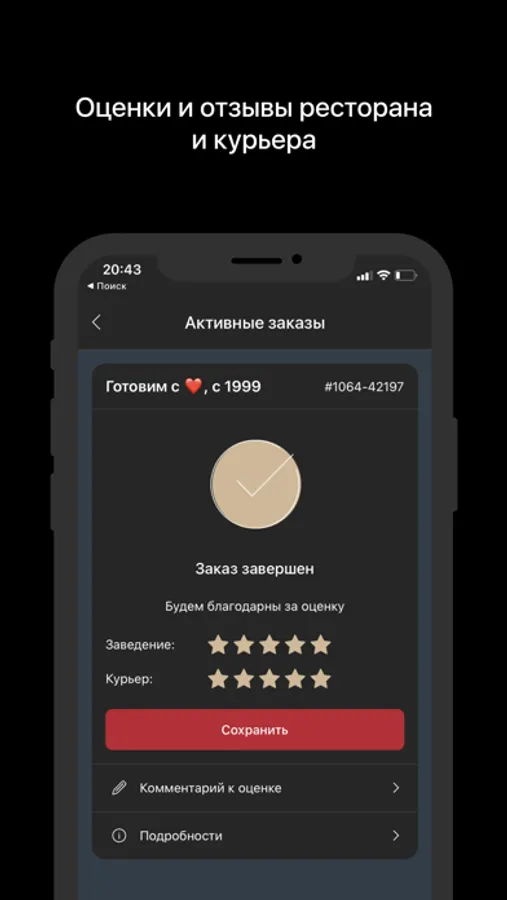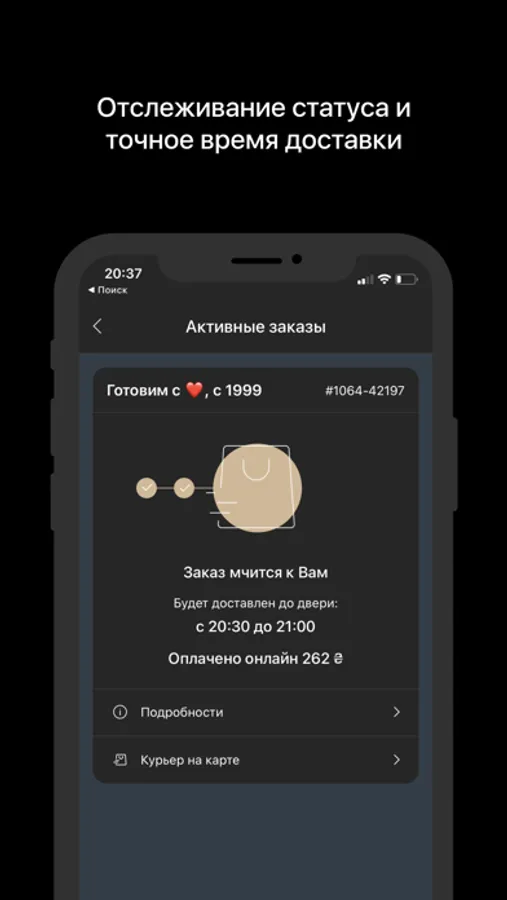 5. Получать статусы готовности заказа и отслеживать перемещения курьера на карте.