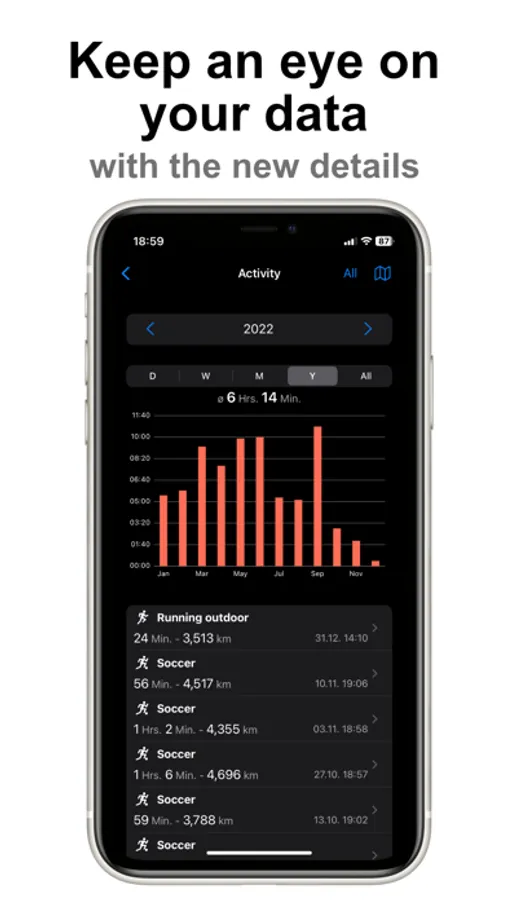 - Import activities from your Apple Watch or other Apps (+).