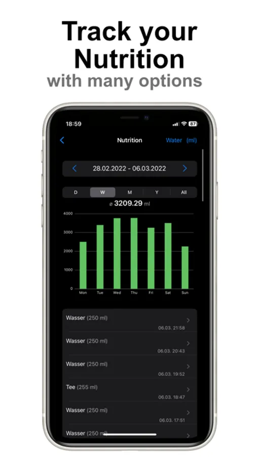 - Set daily goals for water and nutritional values.