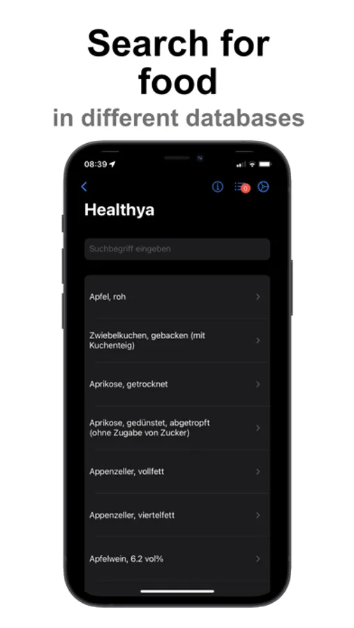 - Search foods with the Healthya Food Database, OpenFoodFacts or USDA nutritional database (available in certain languages only) (+).