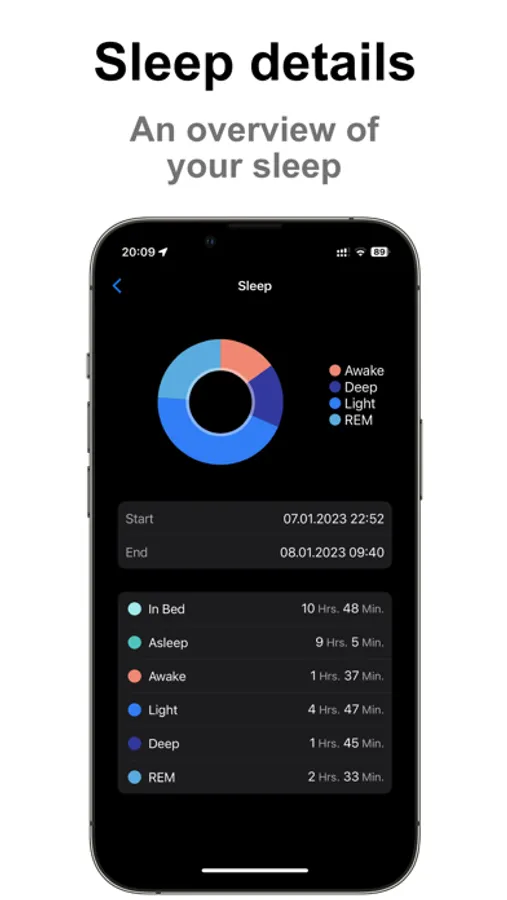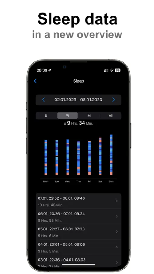 - Import your sleep from Apple Health or your Apple Watch.