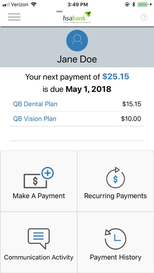 Stay up to date and worry free with the HSA Bank COBRA & Direct Billing App! Manage your plans 24/7 through the intuitive design and navigation while on the go. Powerful features of this app include (if supported by your account):