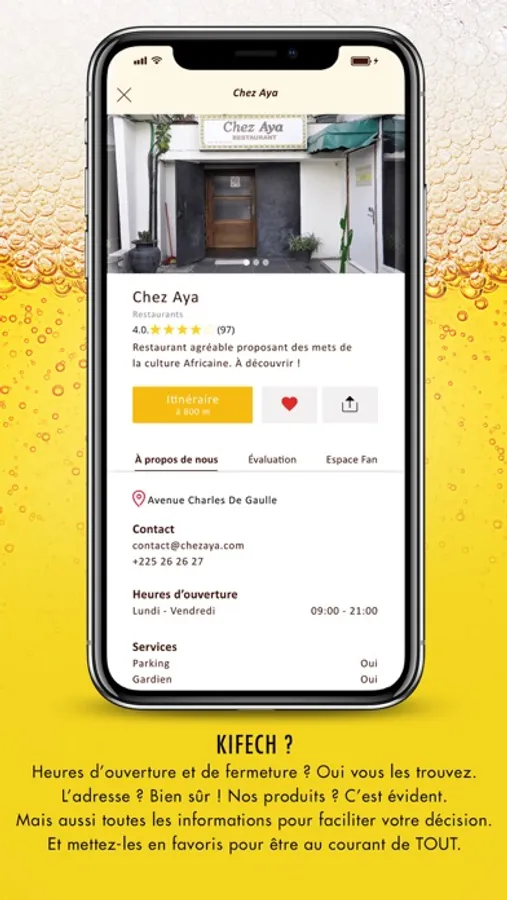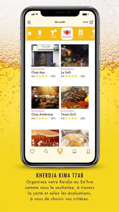 - Ajouter dans vos favoris vos établissements préférés afin de recevoir des notifications de leurs derniers événements et promotions