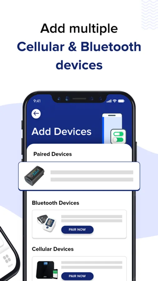 Depending upon your provider, you may be asked to connect various health devices (Bluetooth or Cellular) from the reputed medical manufacturers.