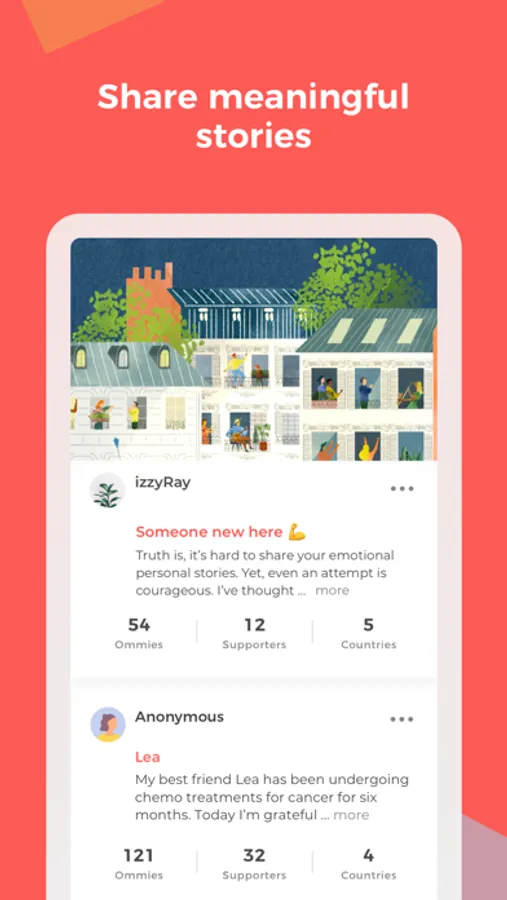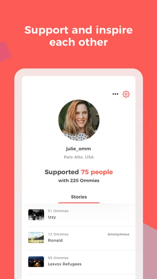 Ommie is a social goodwill app and a place to foster compassion. Our community shares profound personal stories, shining light on the most meaningful things in life. Ommie members support and inspire each other during challenging times through messages and symbols of support.