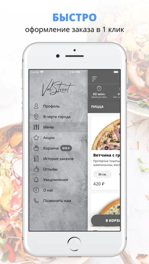 Команда «Volstreet» предлагает своим гостям попробовать настоящую итальянскую пиццу на любой вкус: с мясом, овощами, грибами, морепродуктами, острые и вегетарианские. Мы готовим пиццы разных размеров, поэтому неважно – заказываете вы только на себя или на большую компанию, у нас вы сможете выбрать оптимальный размер пиццы. Неповторимый вкус. Попробовав нашу пиццу хотя бы раз, ее мощный вкус не возможно забыть более. Для приготовления мы используем только натуральные ингредиенты, качественное тесто и 100% настоящий сыр Моцарелла. Быстрая и бесплатная доставка. Среднее время доставки – 45 минут. Мы постоянно стремимся улучшать скорость нашей доставки, ведь от этого зависит вкус и свежесть блюда. Также, приятным бонусом станет то, что наша доставка бесплатная. Доступные цены. Мы очень внимательно проводим ценовую политику и стараемся предлагать самые привлекательные цены на весь ассортимент блюд.