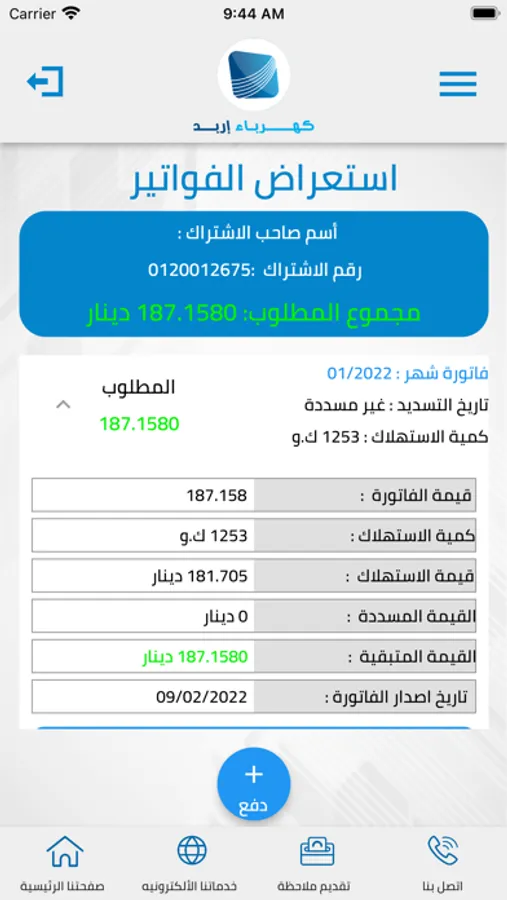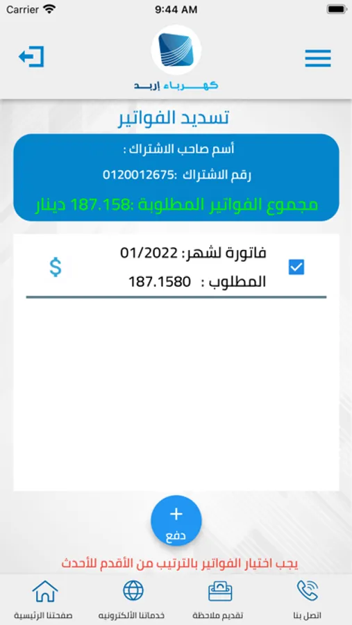 4- إستعراض فواتير : إستعراض جميع فواتير المشترك بطريقة منظمة.