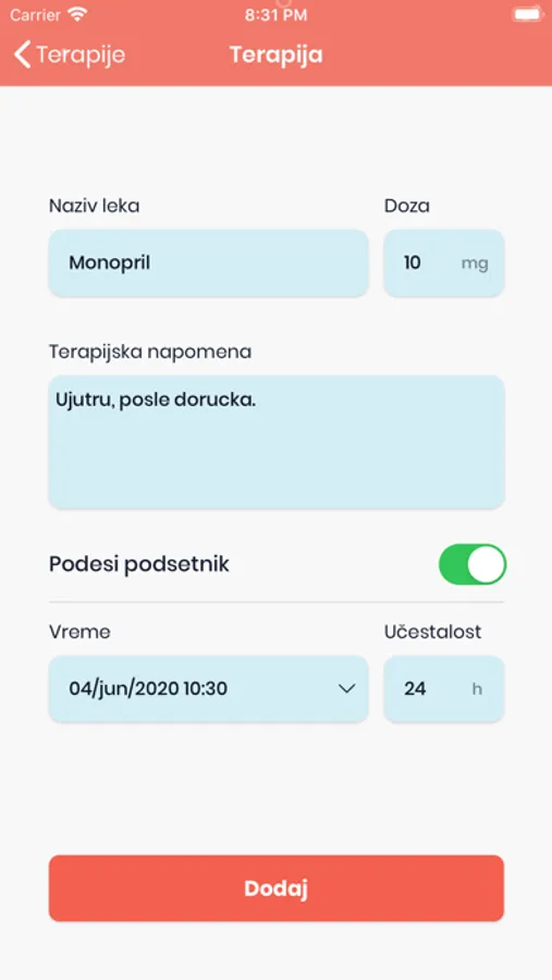 Aplikacija je zamišljena kao sveobuhvatna pomoć pacijentima u primeni terapije i praćenju opšteg stanja.