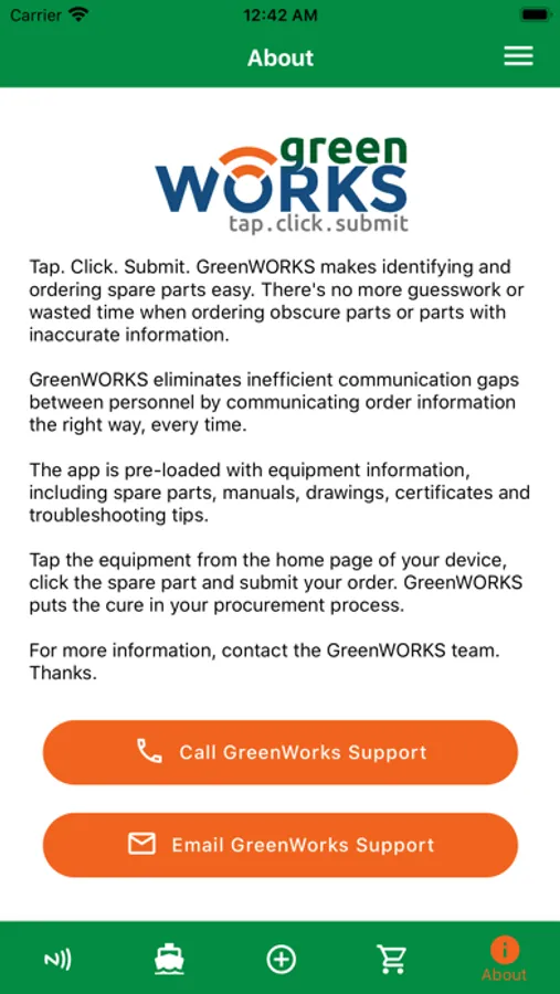 - greenWORKS allows your crews the opportunity to request the right part, the first time, every time. No more searching for serial numbers, looking for manuals, or ordering the wrong parts.