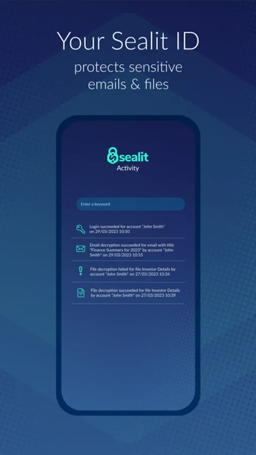 Sealit is a security framework that works alongside you to help protect your data and your business. With your Sealit digital identity you can easily encrypt and share files and emails without passwords and track how they are accessed in real time. Sealit integrates with your everyday tools to ensure that you and your staff continue working the way you do while being silently protected by Sealit.