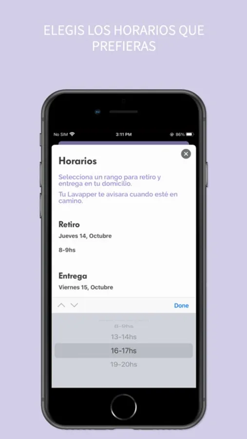 Con LAVAPP vas a poder realizar pedidos de servicio de lavandería desde cualquier lado y a cualquier hora, pudiendo elegir el día y horario del servicio de retiro y entrega, para que puedas disfrutar tu tiempo libre como más te guste.