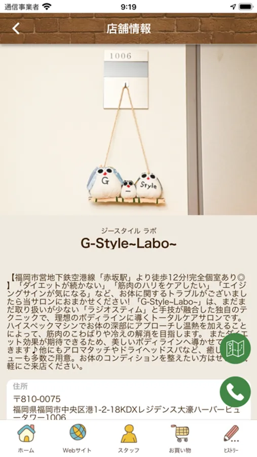 店舗のマップが表示され、地図アプリとも連携しているので、初めてのご来店の時も簡単に見つけることができます。
