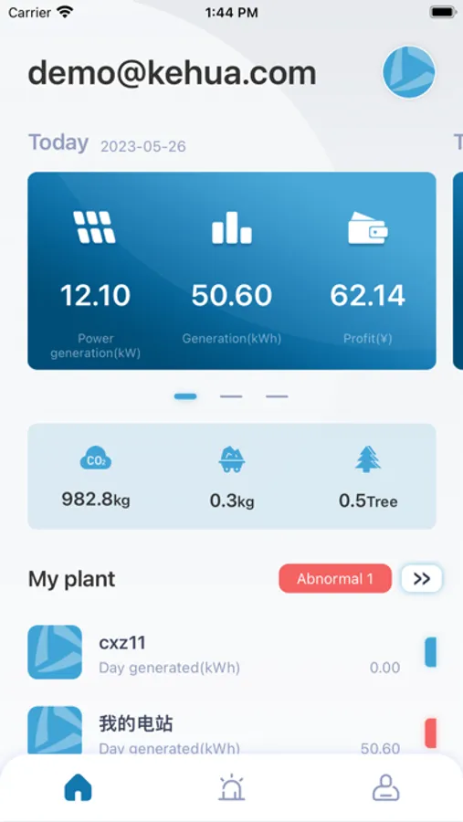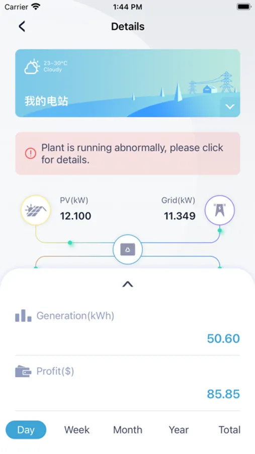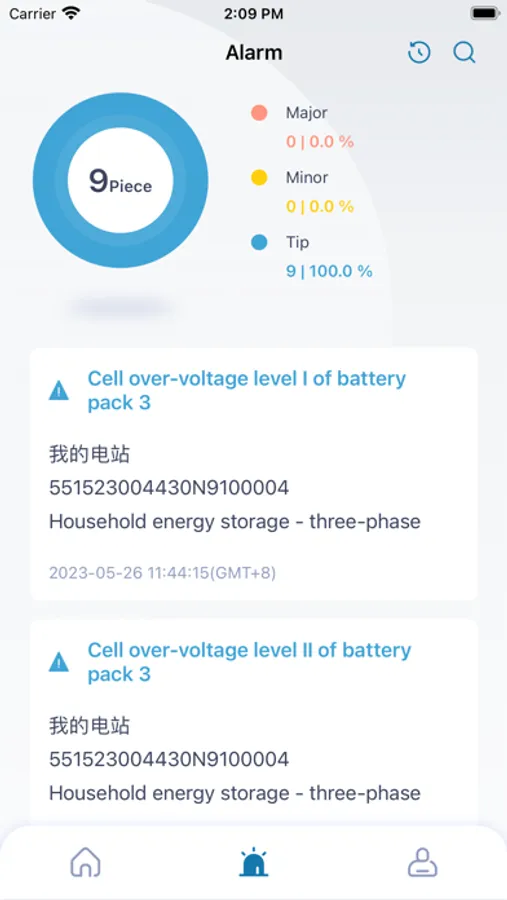 2. App mainly classifies the data communication of PV inverter through four modules of "monitoring", "alarm", "history" and "setting"