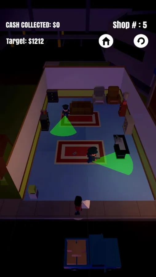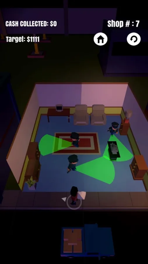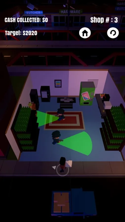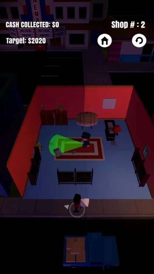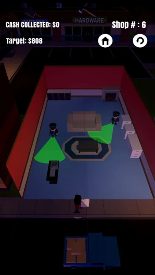 Steal as many items as you can while evading the police. Take your finger off of the screen while playing to hide yourself beneath a box and fool the cops. Once you've stolen enough goods you can run back to the getaway car and scram!