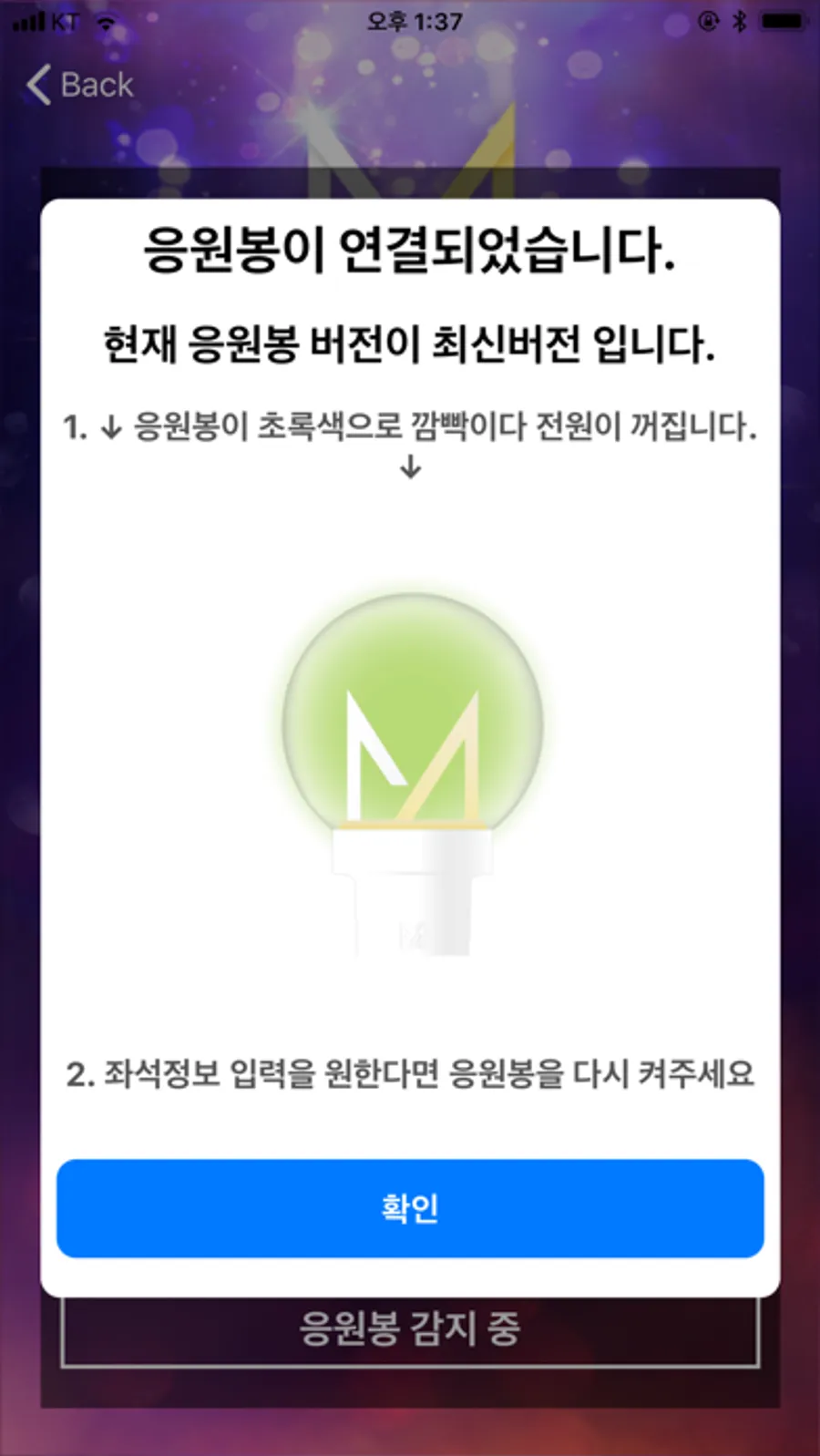 현재 응원봉 버전 및, 배터리 잔량을 체크하여 공연 시작 전 배터리 교체가 필요한지 확인해주세요.