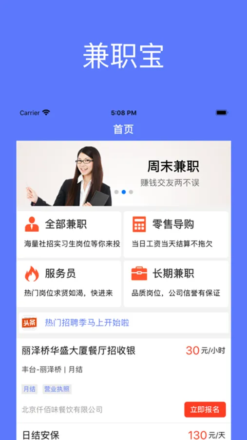 兼职宝是一个为兼职双方提供保障、双向交流和监督的求职招聘手机平台。