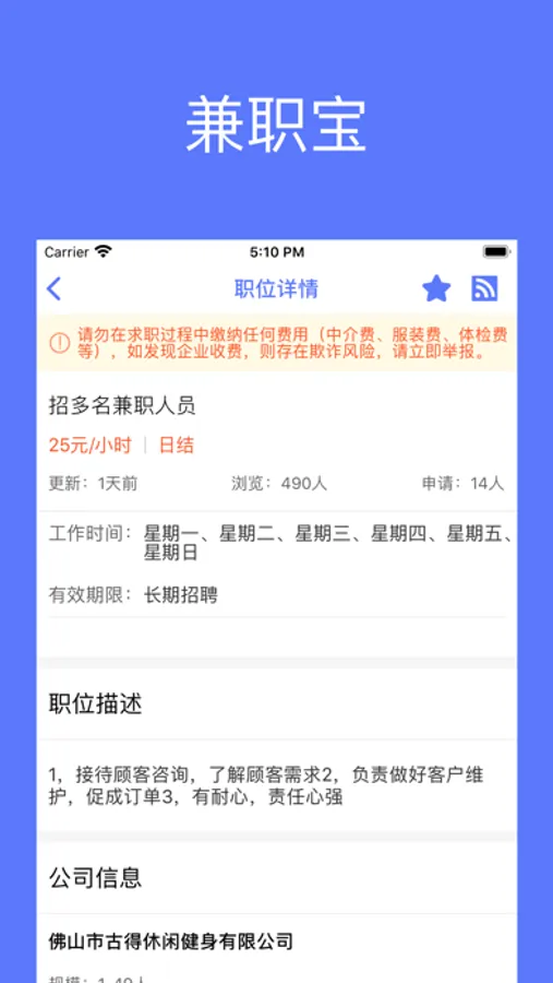 兼职宝是一款保障求职者权益、受企业欢迎的兼职招聘手机应用产品。