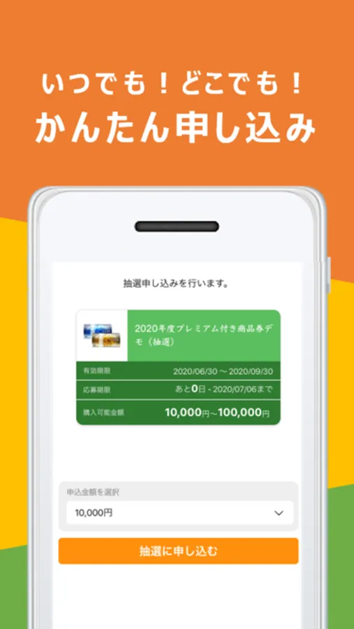 アプリ内で商品券を選択し、購入希望金額を選び申込するだけで手続き完了です。