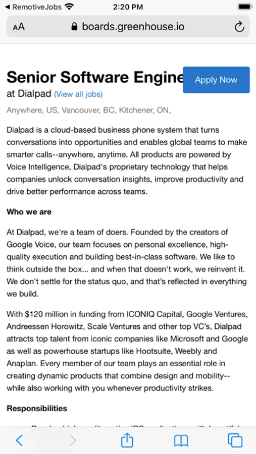 The actual application process is handled by the company posting the job and this app will take you the company site.
