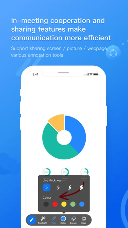 Easy to use, share Screen/iCloud files/Photos, Whiteboard for cooperative work., intelligent virtual background, Cloud recording, Meeting interactive management…