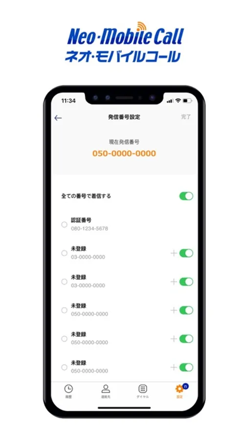 固定電話番号がスマホで利用できるアプリ、ネオ・モバイルコール。