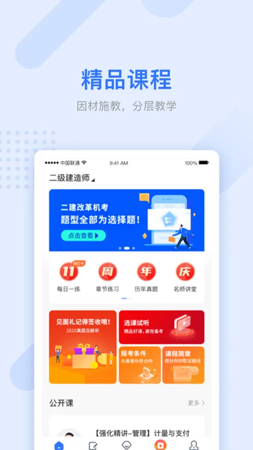 一个专注于职业培训的在线移动应用,主要涵盖一级建造师、二级建造师、消防工程师、监理工程师和安全工程师等建工项目,平台聚合了丰富的教学资源,系统的教学计划,专业的教学名师,因材施教,分层教学,让每位学员都能选择适合自己的课程,帮助学员提升专业知识,轻松应对考试。