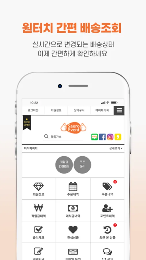 이 APP은 새로이벤트 쇼핑몰과 100% 연동되어 있을 뿐만 아니라